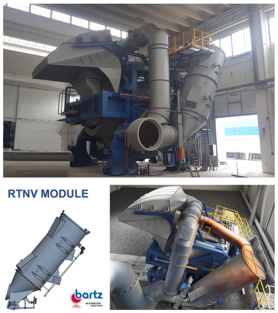 Aluminum recycling: new feature for the Rotary-Tilting-Furnace of the KTO-series. Bartz company has developed an integrated thermal afterburning module for the KTO tilting drum furnace – the RTNV.